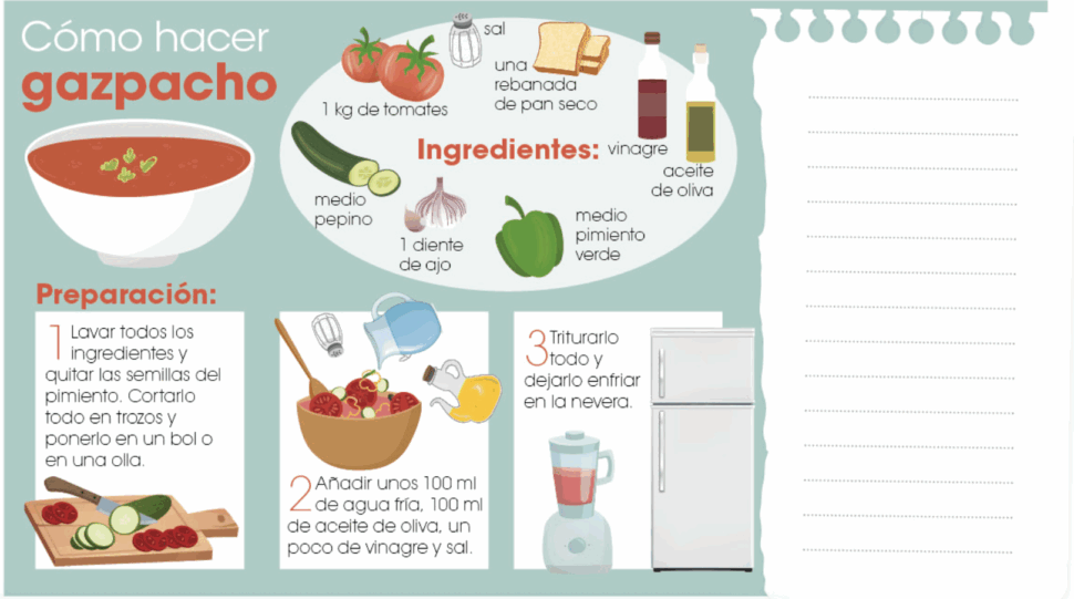 - explicar cómo se prepara un plato