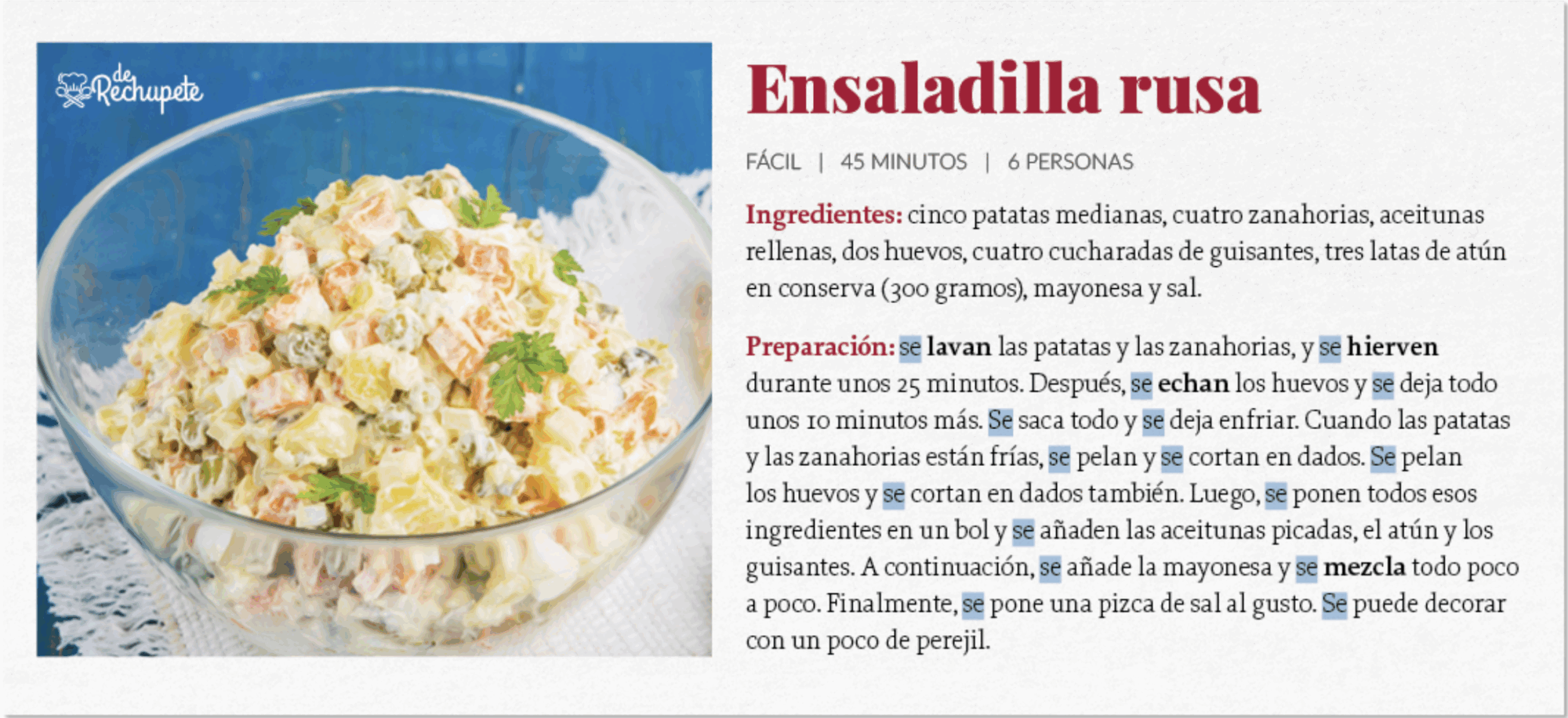 (No) consumen / comen / toman / usan (mucho/a/os/as)… azúcar / carne / verduras / frutos secos…